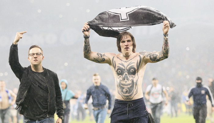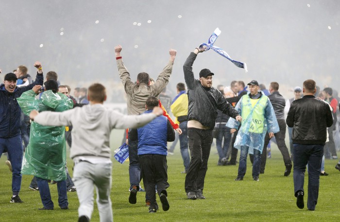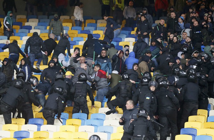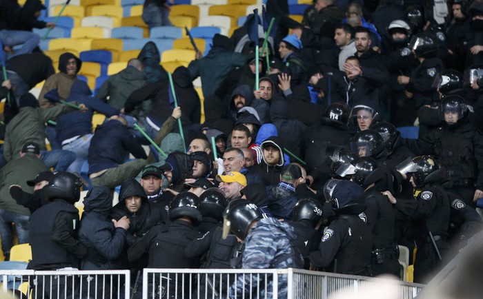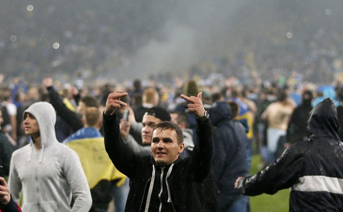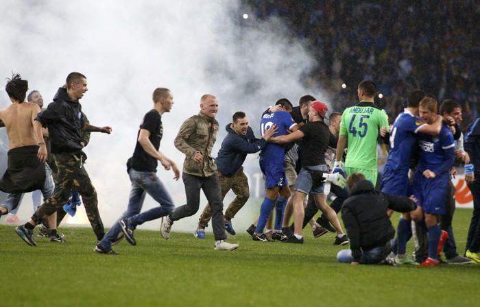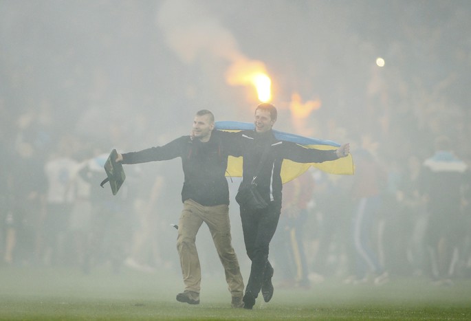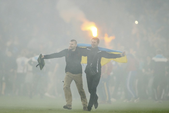 Фанаты принадлежащего Игорю Коломойскому «Днепра» устроили беспорядки на киевском стадионе НСК «Олимпийский» после победы над «Наполи» (1:0) в ответном полуфинальном матче Лиги Европы.