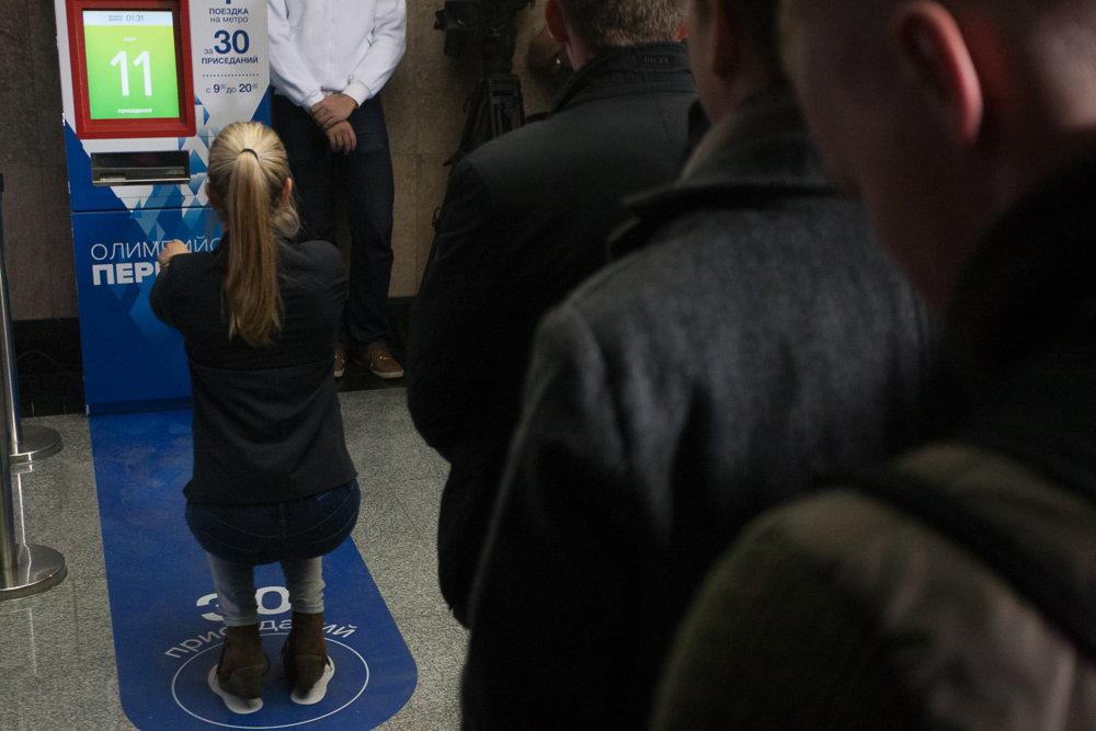 На станции метро «Выставочная» заработал аппарат, позволяющий купить билет на одну поездку за тридцать приседаний. Билетный аппарат появился в рамках проекта «Олимпийские перемены», он будет работать до 3 декабря.
