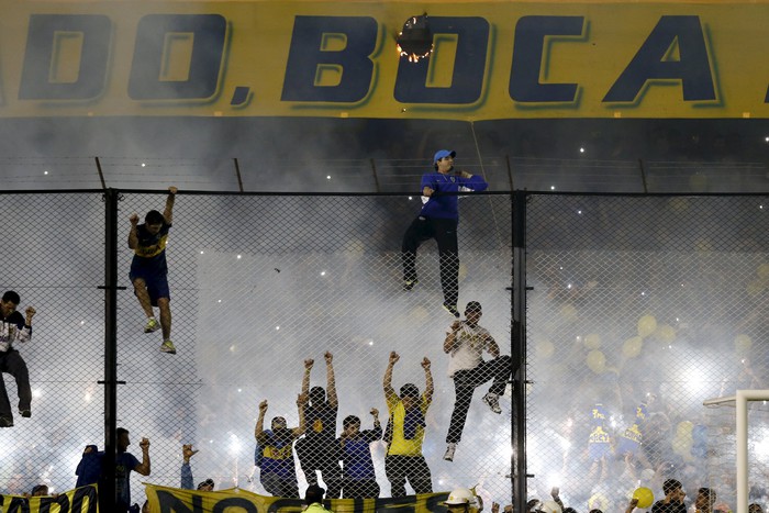 После завершения первого тайма, когда команды уходили в раздевалки, болельщики «Боки» нашли брешь в тоннеле безопасности и распылили перцовый газ на футболистов «Ривера». В результате пострадали несколько игроков. Матч был приостановлен примерно на час. Позднее арбитры приняли решение не доигрывать встречу, проходившую на стадионе «Альберто Армандо».