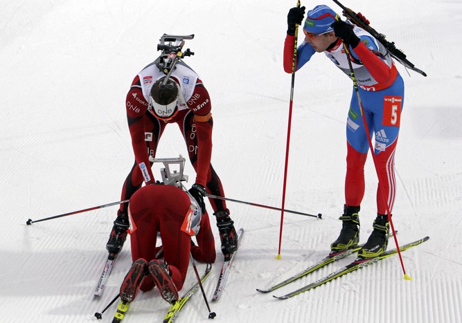 Антон Шипулин завоевал серебро чемпионата мира в масс-старте в Нове-Место, опередив норвежца Эмиля Хегле Свендсена. Россиянин принес единственные обе награды для команды в неофициальный командный зачет турнира, взяв при этом впервые на соревнованиях серебряную медаль. Чемпионом мира стал соотечественник Свендсена Тарьей Бё. А немногим ранее белорусская биатлонистка Дарья Домрачева стала чемпионкой мира в Нове-Место, финишировав первой в масс-старте. Россиянки же не завоевали ни одной медали на ЧМ — Ольга Зайцева стала только пятой.