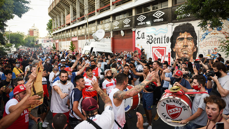 Фанаты Диего Марадоны у стадиона «Диего Армандо Марадона» в Буэнос-Айресе, Аргентина, 25 ноября 2020 года Жители Буэнос-Айреса у дворца Каса Росада в центре города, 26 ноября 2020 год