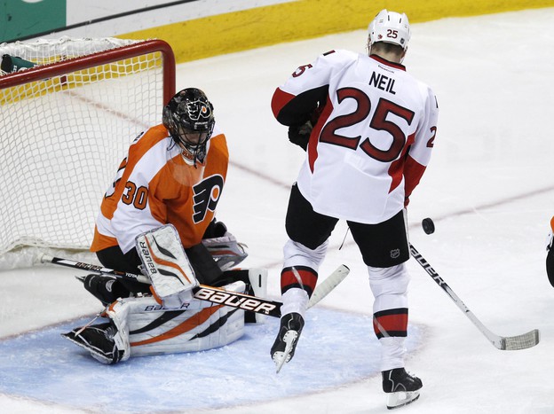 В первом матче большой игровой субботы в НХЛ «Филадельфия» обыграла «Оттаву». Илья Брызгалов отразил 33 броска и стал первой звездой встречи. Передача Александра Овечкина помогла «Вашингтону» обыграть «Виннипег».