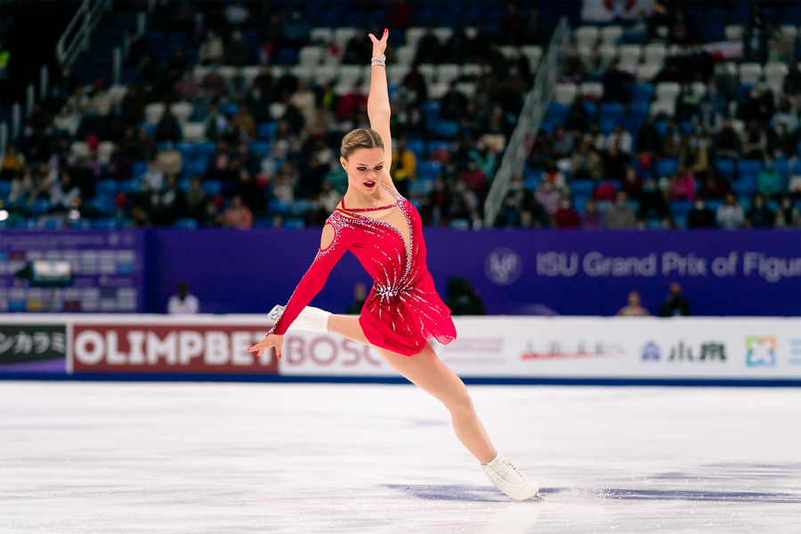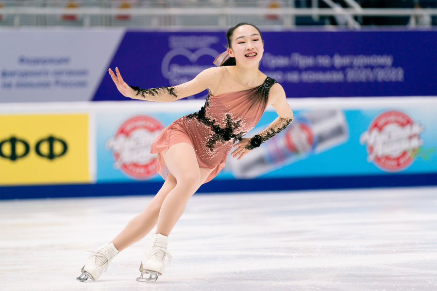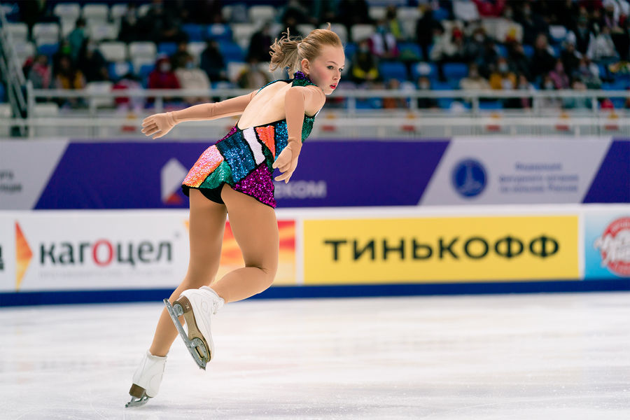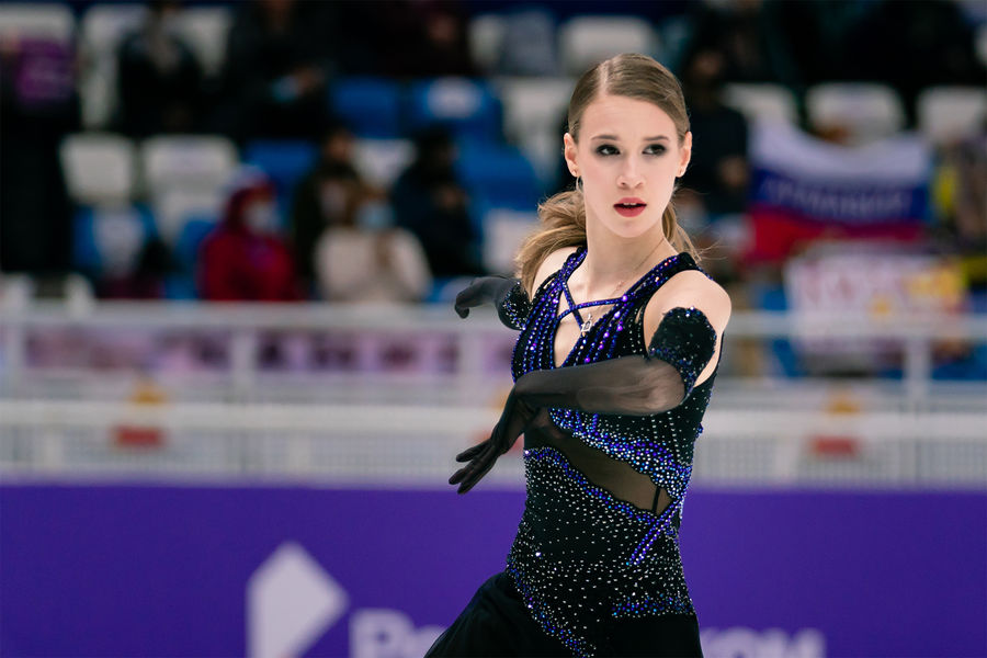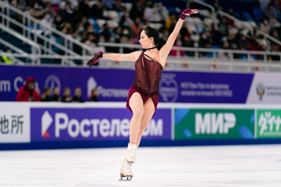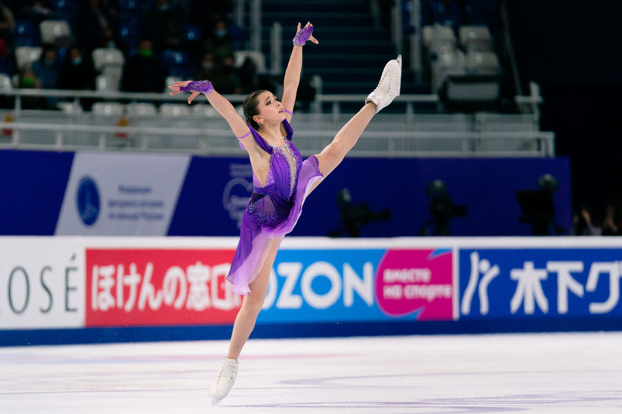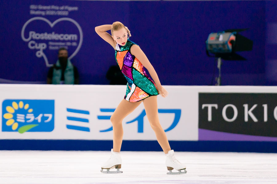 Камила Валиева выиграла короткую программу на Гран-при России с новым мировым рекордом — 87,42 балла. На второй строчке оказалась Елизавета Туктамышева с результатом 80,10 балла. Майя Хромых упала с прыжка и получила лишь 64,72 балла, заняв пятое место.