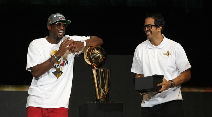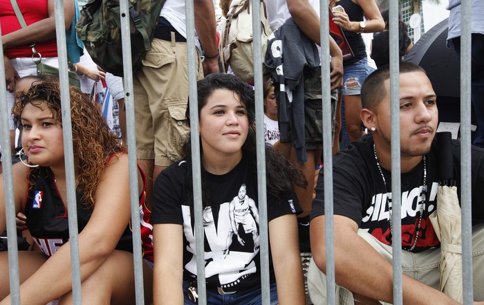 В Майами состоялся чемпионский парад в честь победы клуба «Хит» в плей-офф НБА. Поприветствовать любимцев собралась внушительная толпа болельщиков.