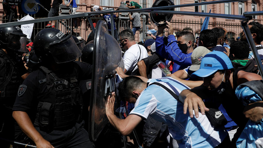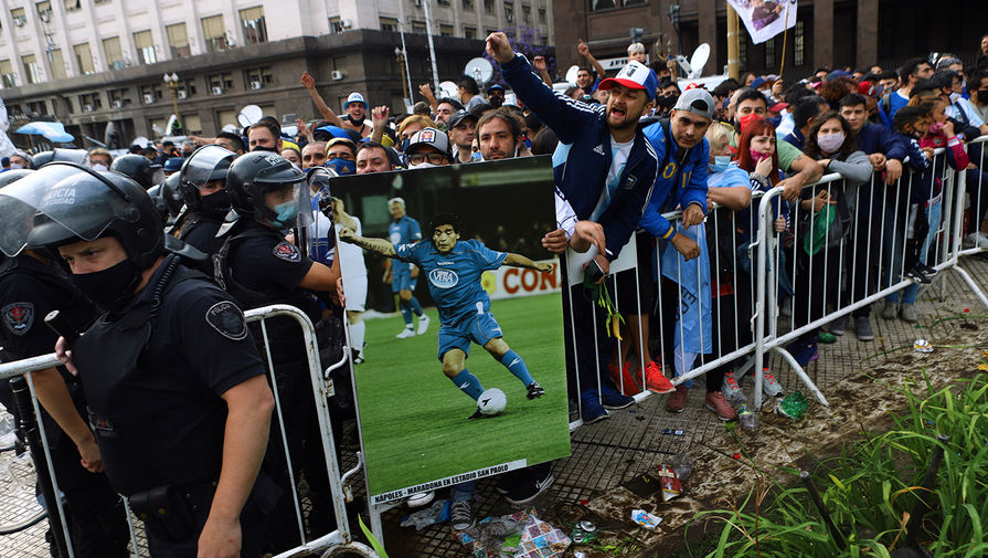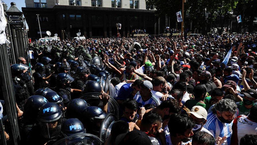 Изначально было объявлено, что панихида продлится до 16.00, что привело к беспорядкам. Некоторые поклонники чемпиона мира — 1986 попытались прорваться внутрь дворца, чтобы успеть попрощаться с кумиром, и возник хаос. В полицейских полетели бутылки, а те в ответ применили резиновые пули и слезоточивый газ. Испугавшись выстрелов, часть скорбящих побежала в сторону и снесла заграждения. Чтобы успокоить толпу, аргентинские власти приняли решение продлить панихиду на три часа – до 19 часов.