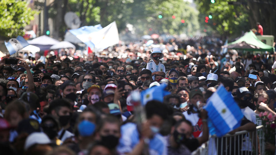 В столице Аргентины Буэнос-Айресе проходит прощание с легендой футбола Диего Марадоной, который скончался от сердечного приступа утром 25 ноября. Траурная церемония проходит в президентском дворце «Каса Росада» и началась в 6 утра по местному времени. Очередь из желающих проститься с футболистом растянулась на несколько километров – это десятки или сотни тысяч людей.
