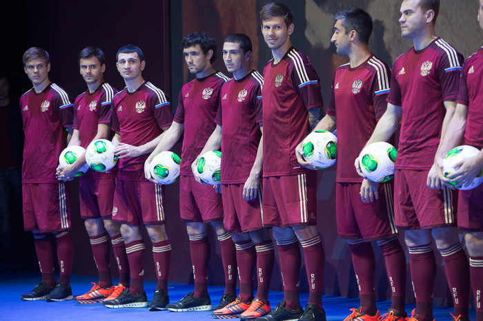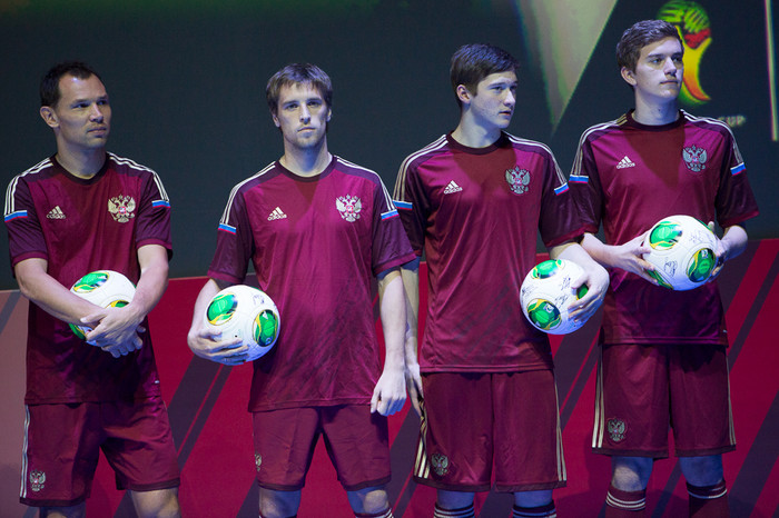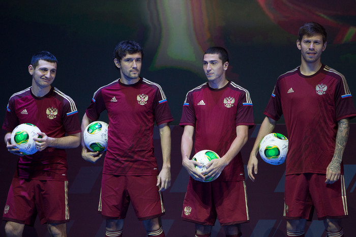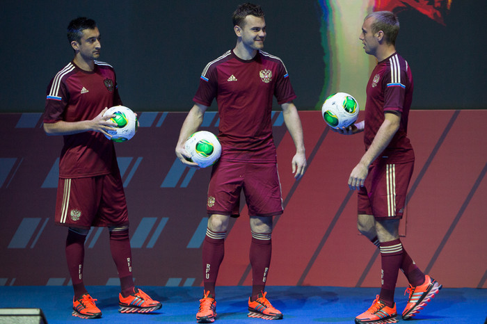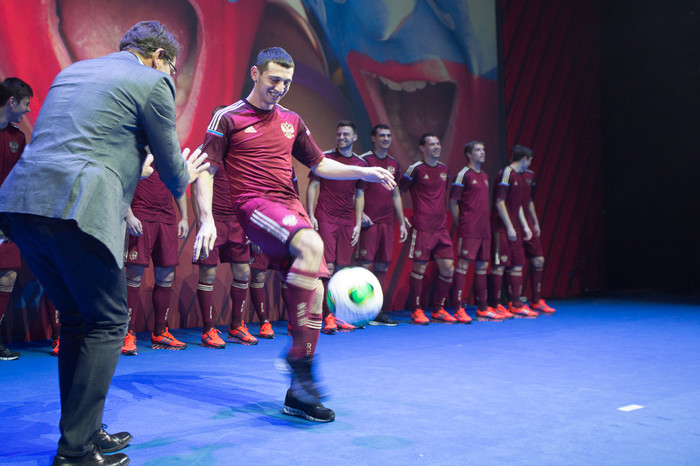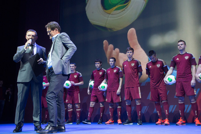 В Барвихе прошла презентация новой формы сборной России по футболу от компании «Адидас». Именно в ней национальная команда под руководством Фабио Капелло выступит на чемпионате мира по футболу 2014 года в Бразилии.
