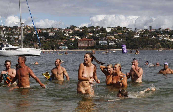 Австралийские нудисты воскресным утром провели заплыв на 900 м близ Сиднея. Это был первый нудистский заплыв в океанских водах.