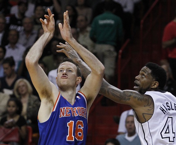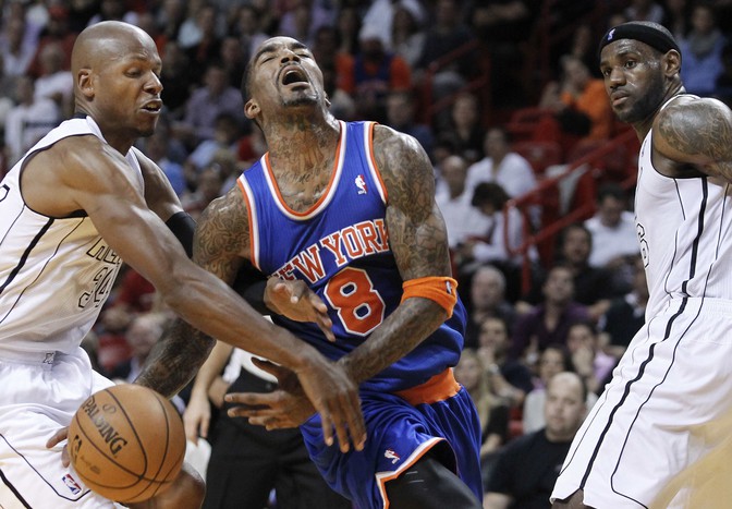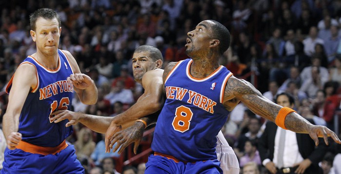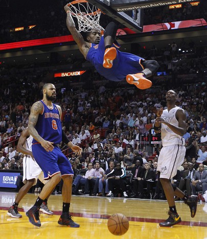 Баскетболисты «Нью-Йорк Никс» на выезде обыграли «Майами Хит» со счетом 112:92 (23:26, 30:27, 37:27, 22:12) в матче регулярного чемпионата НБА. Лидер гостей Кармело Энтони не вышел на площадку из-за повреждение пальца руки