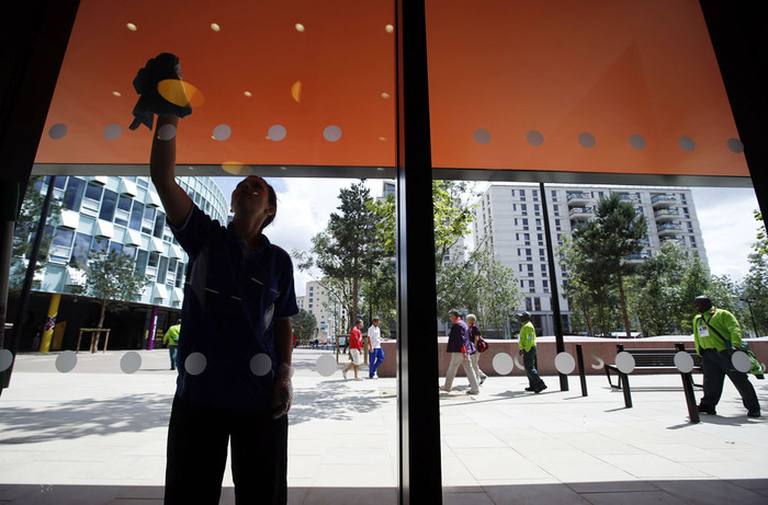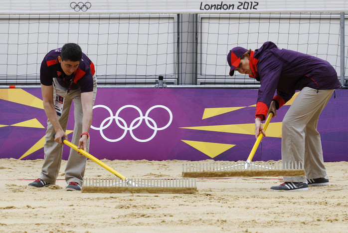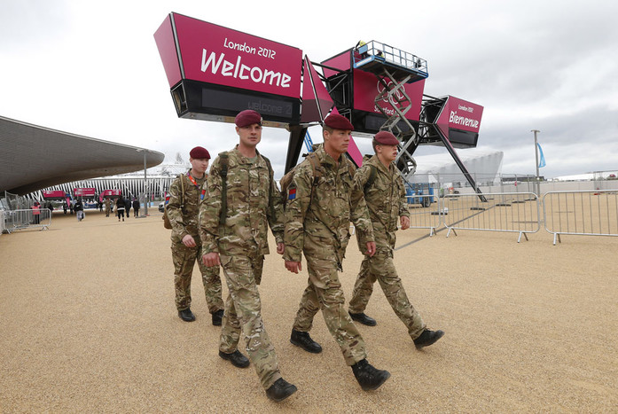 Отличительный знак службы безопасности охраняющей Игры и олимпийскую деревню Председатель оргкомитета Лондон-2012 Себастьян Коу и председатель комитета спортсменов МОК Франк Фредерикс уклыдавают последний кусок дерна на поле Олимпийского стадиона. Во время учения Олимпийской службы безопасности в шести районах Лондона были развернуты ракетно-зенитные комплексы, входящие в состав охраны Олимпиады. На дорогах Лондона появились специальные отметки, указывающие направления к Олимпийским объектам Демонстрация установки робота с камерой, которая будет снимать баскетбольные матчи Олимпиады Мэр Лондона Борис Джонсон пробует кровати размещенные в отелях Олимпийской деревни Мяч для водного поло плавает перед Олимпийскими кольцами во время представления бассейна, на котором пройдут соревнования Последние приготовления площадки для проведения олимпийского турнира по пляжному волейболу Рабочий устанавливает ленту на финишную черту олимпийского велодрома в Стрэтфорде Олимпийский бассейн для прыжков в восточном Лондоне Солдаты королевских вооруженных сил патрулируют олимпийский парк Стрэтфорд Олимпийскую деревню стараются держать в максимальной чистоте