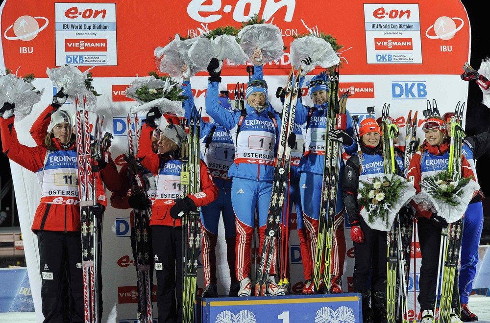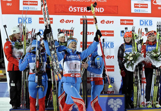 Сборная России по биатлону в составе Ольги Зайцевой, Ольги Вилухиной, Алексея Волкова, Евгения Устюгова выиграла смешанную эстафету на первом этапе Кубка мира в шведском Эстерсунде.