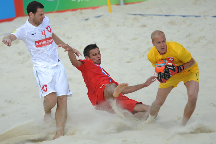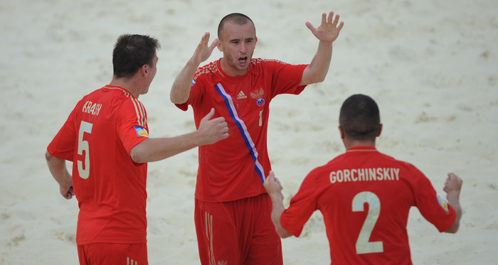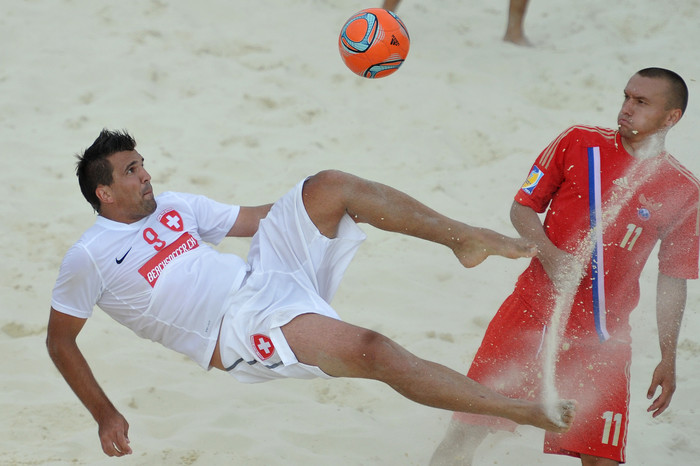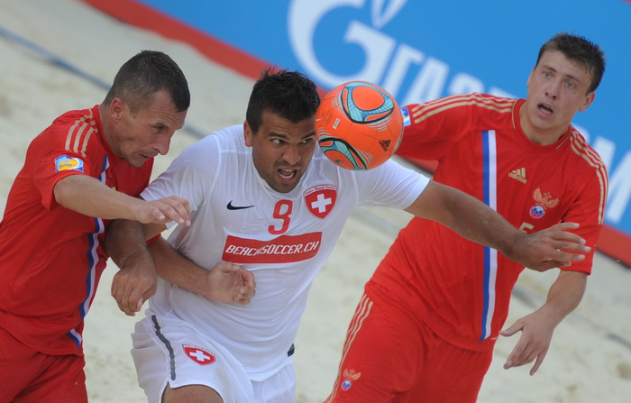 Сборная России вышла во второй групповой раунд отборочного раунда чемпионата мира по пляжному футболу 2013 года, обыграв с минимальным перевесом в 1/8 финала команду Швейцарии.