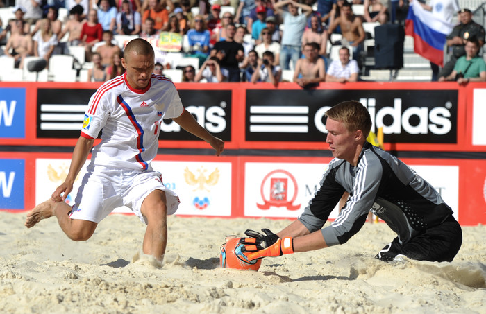Сборная России по пляжному футболу разгромила команду Латвии в первом матче квалификации Кубка мира 2013 года. Россияне девять раз поразили ворота соперника, на что латыши ответили лишь дважды.