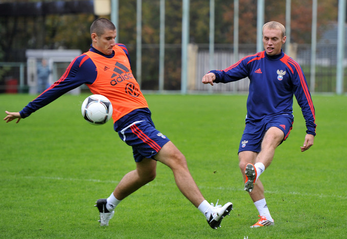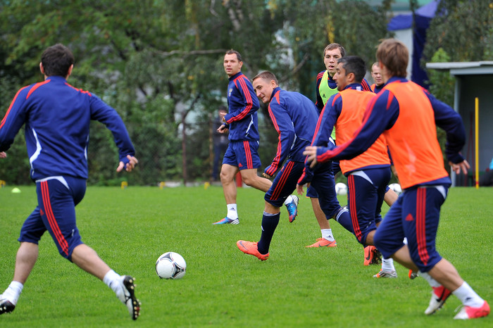 Сборная России по футболу провела тренировку на стадионе имени Стрельцова, готовясь к отборочным матчам ЧМ-2014 с командами Северной Ирландии и Израиля. Команда сначала занималась на одном поле, а потом перешла на основной стадион.