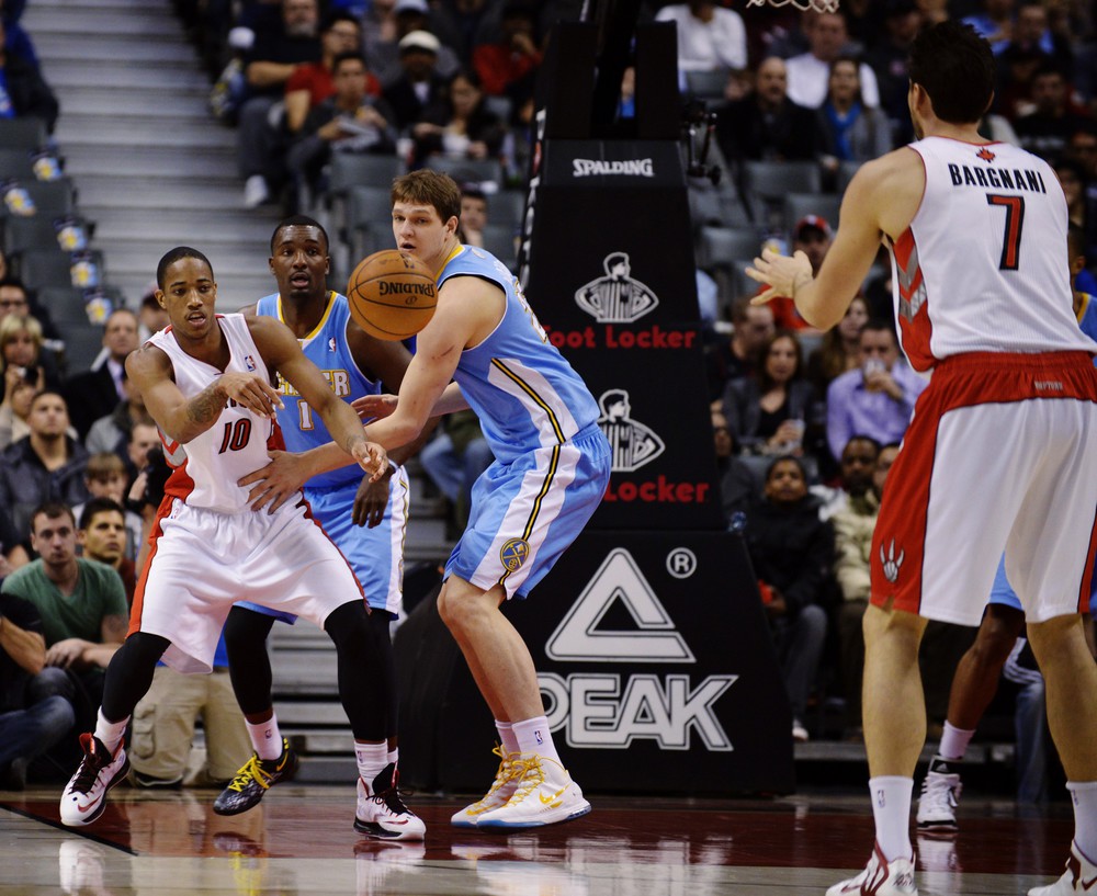 «Денвер» на выезде проиграл «Торонто» в матче регулярного чемпионата НБА. Российский центровой «Наггетс» Тимофей Мозгов набрал четыре очка. «Оклахома-Сити» неожиданно проиграла «Юте», «Майами» выиграл у «Портленда», а «Лейкерс» победил «Финикс», несмотря на то что лидер калифорнийцев Коби Брайант выдал худшую свою игру за последние 12 лет.