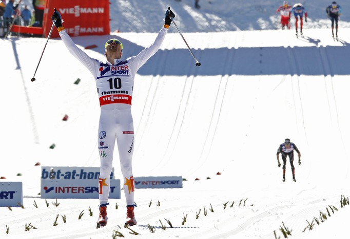 Юхан Олссон оторвался от соперников и сумел сохранить отрыв до самого финиша Юхан Олссон провел гонку очень грамотно Юхан Олссон на финише, а лучший из российских лыжников, Александр Легков, финишировал четвертым Вторым финишировал швейцарец Дарио Колонья, а знаменитый норвежец Петер Нортуг оказался за пределами первой двадцатки Юхан Олссон на пути к золоту Дарио Колонья с серебром