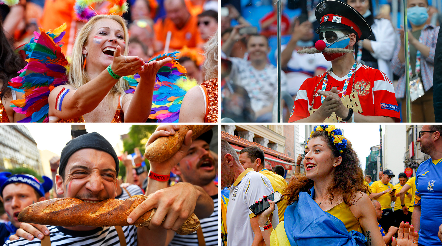 Грустные поклонницы сборной Хорватии, наблюдающие за вылетом своих любимцев от Испании; Луиджи и Марио, которые гонят к победе на Евро-2020 дружину Роберто Манчини; шотландцы в национальных костюмах с раскрашенными лицами; неожиданные испанцы и счастливые украинцы, русский колорит и шведские мужчины в женских костюмах, черепашки-ниндзя с лицом Килиана Мбаппе, Астерикс и Обеликс в толпе фанатов сборной Франции — «Газета» публикует подборку самых ярких болельщиков, собравшихся на трибунах стадионов и улицах городов.