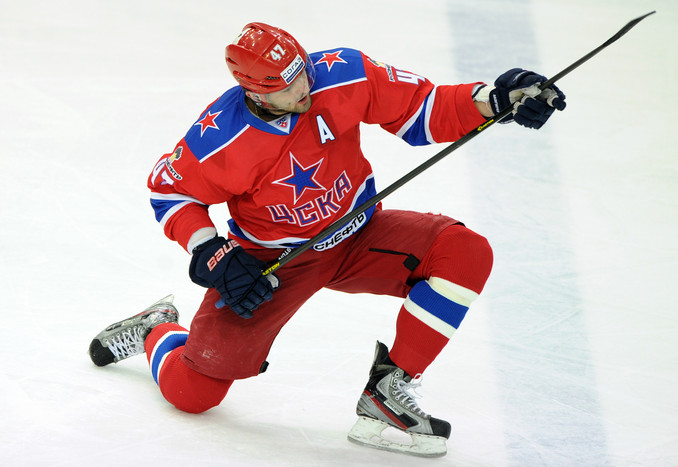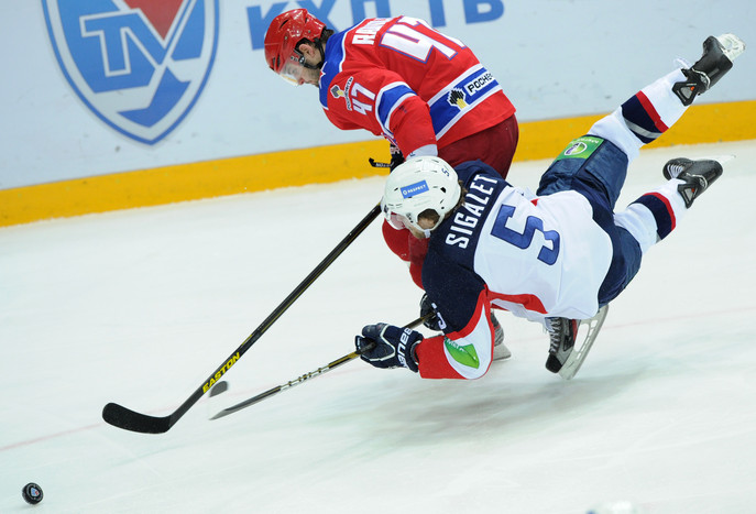 Армеец Михаил Грабовский в борьбе с Либором Гудачеком Андрей Штястны нарушает правила на Павле Дацюке Вратарь ХК «Слован» Ярослав Янус не справился с броском Александра Радулова Армейцы празднуют заброшенную шайбу Александр Радулов отмечает гол Главный тренер ХК «Слован» Ростислав Чада Джонатан Сигалет ведет отчаянную борьбу против Александра Радулова