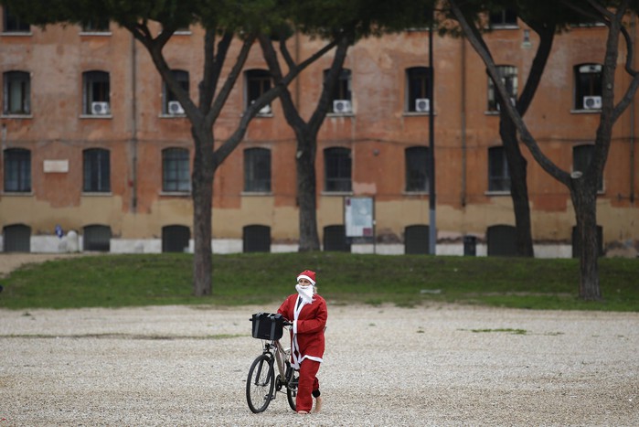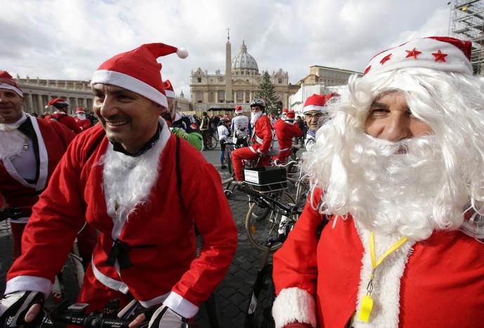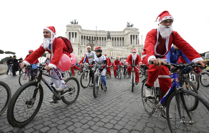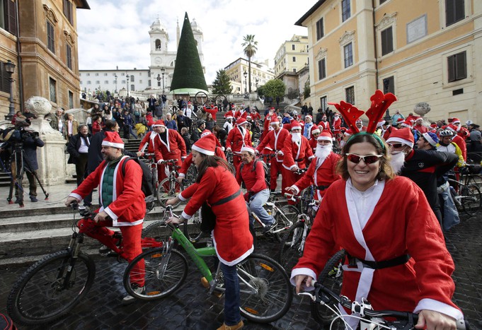 Велопробег Санта-Клаусов в Риме