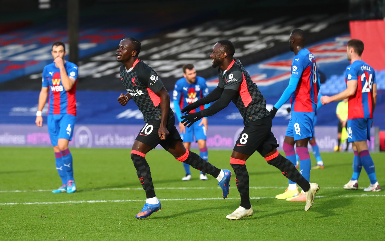 Дважды мерсисайдцы забрасывали мяч в направлении Мане, но того центр обороны «Пэлас» внимательно сторожил.