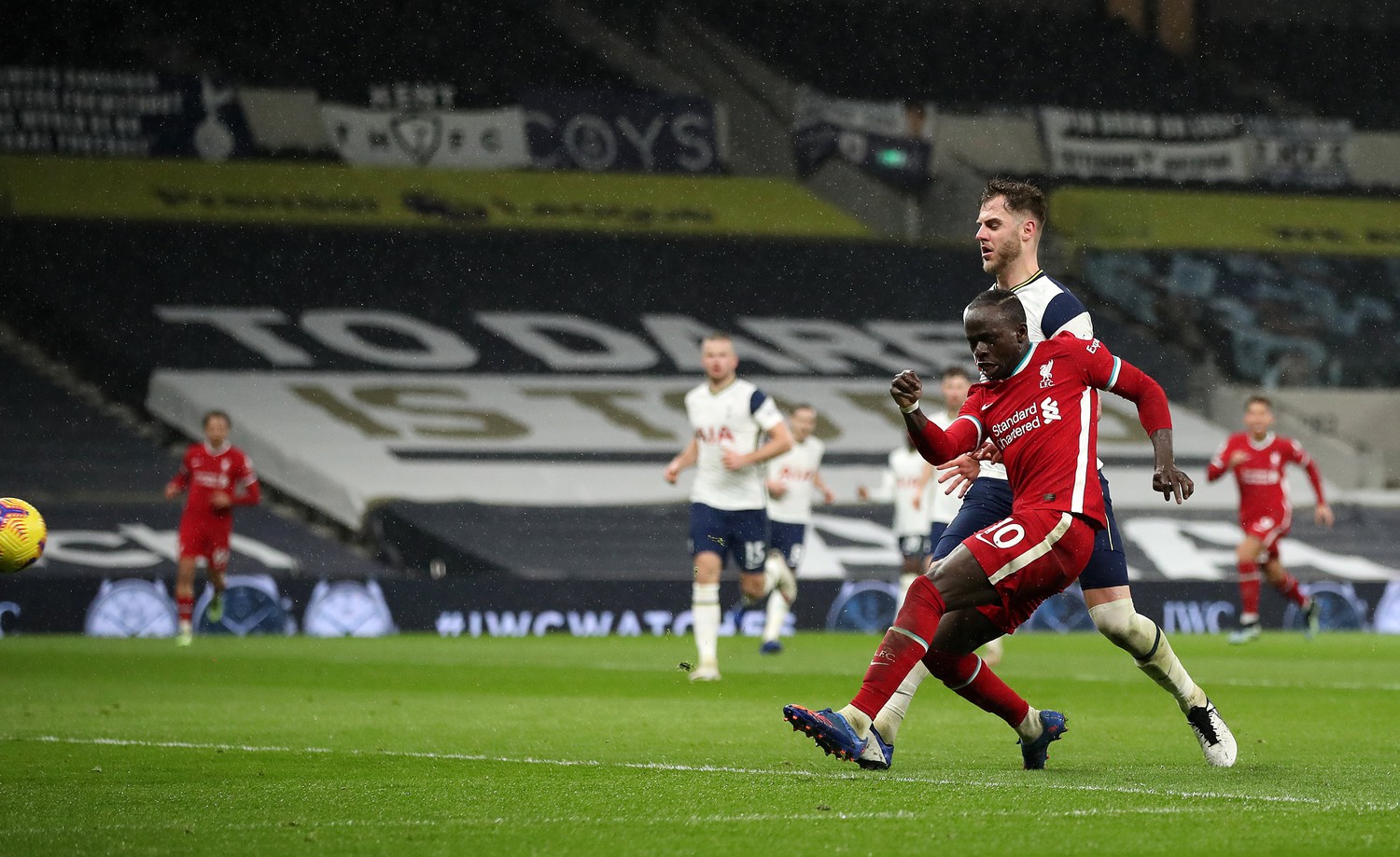 Садьо Мане забивает в ворота «Тоттенхэма» за «Ливерпуль»