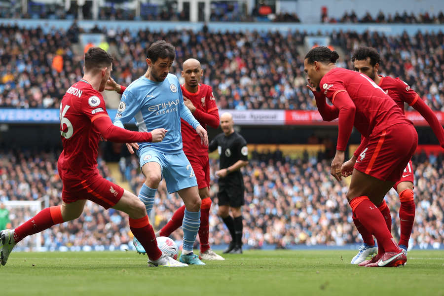 В игре опять начался спокойный отрезок. «Сити» контролирует мяч на своей половине поля и восстанавливает силы. «Ливерпуль» не поднимается высоко для прессинга и провожает мяч глазами.