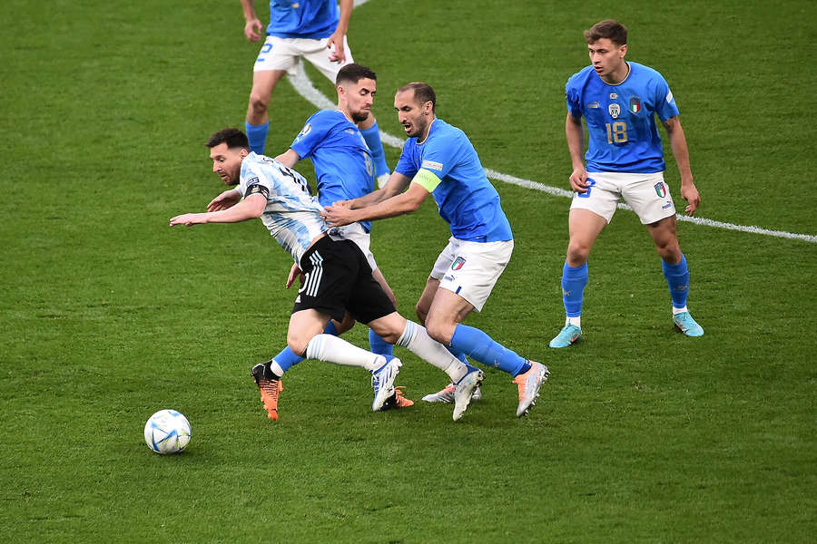 Кьеллини прекрасно сыграл в воздухе в своей вратарской после подачи Месси корнера. Дальше вторым темпом аргентинцы вернули мяч в штрафную, но Лаутаро сфолил в атаке.