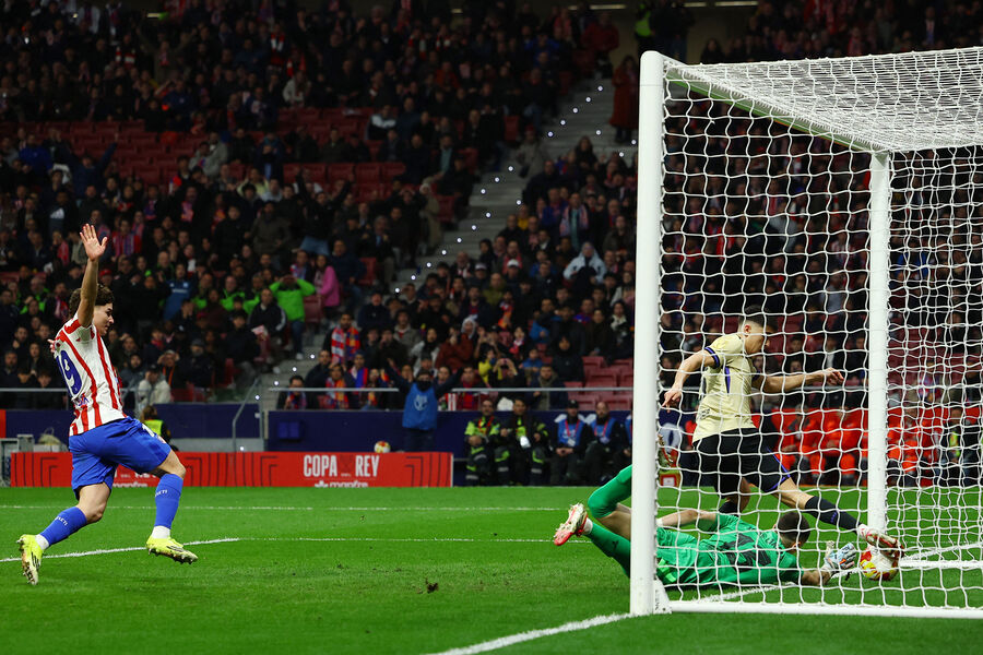 Кунде нашел классным пасом в штрафной «Атлетико» Фермина, но Муссо успел выскочить на встречу и отразить удар в упор.