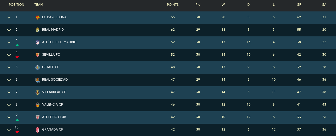 Теперь таблица Ла Лиги выглядит так: