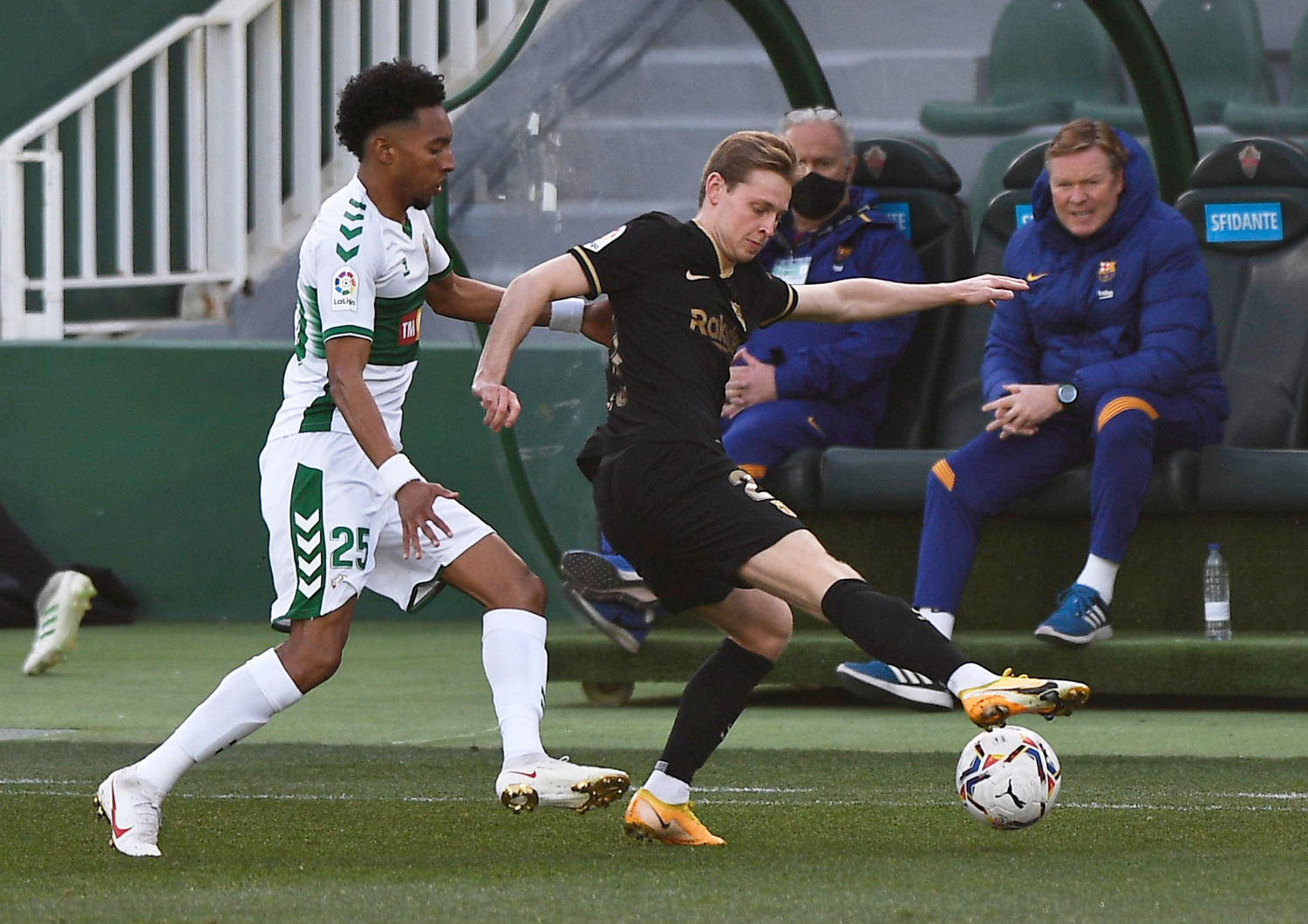 Матч окончен! «Барселона» на выезде уверенно обыграла «Эльче» — 2:0. В первом тайме отличился Де Йонг, а после перерыва голом отметился Пуч. Команда Кумана одержала третью победу подряд и поднялась на третье место в Примере. На этом наша трансляция завершена. Всего хорошего!