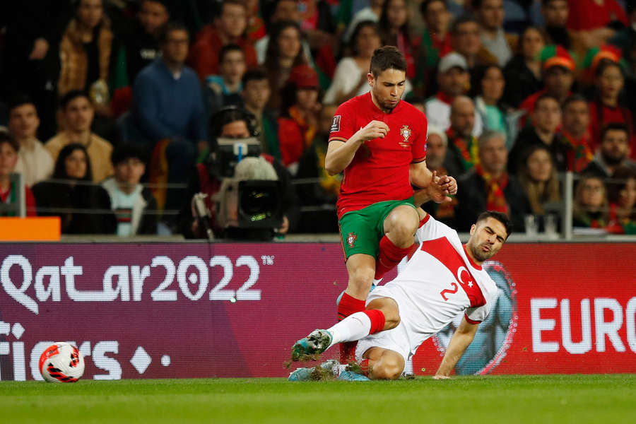 Турки привезли сами себе опаснейший выпад. Фернандеш уже вырезал в центр штрафной на убойную позицию набегавшему Жоте, но Озан Кабак успел первым, вынеся мяч!