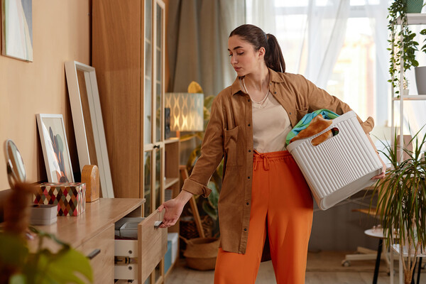 - Наведите порядок в шкафах. Уберите сезонные вещи и отложите ненужные — неподходящие и те, что вас уже не радуют. Позже их можно отдать на благотворительность или продать.
