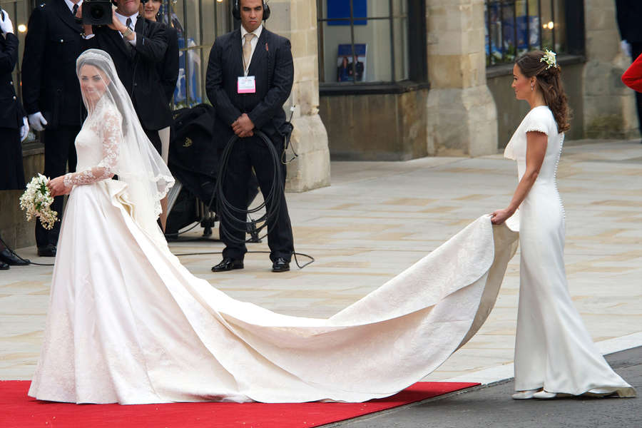 Свадьбу принца Уильяма и Кейт Миддлтон в 2011 году ждали не только подданные британской короны, но и весь мир. Особенное любопытство вызывало платье, в котором невеста наследника престола пойдет под венец. Всеобщее любопытство было оправдано: Кейт надела платье Alexander McQueen, стоимость которого, по данным The Sun, оценивается в £250 тысяч (27 742 500 руб.).