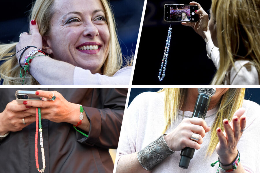 Лидер «Братьев Италии» носит фенечки в цветах итальянского флага и браслеты из бусин, будто сплетенные ее 6-летней дочерью Джиневрой.