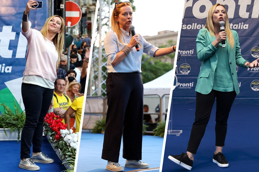 Напротив, некоторых чересчур расслабленный внешний вид Мелони смущает. «На политических митингах она произносит свои страстные часовые речи в черных брюках, выглядящих так, словно они с полки супермаркета. Элегантная одежда, туфли на каблуках Prada и дорогие салонные прически, любимые римской политической элитой, не для нее», — раскритиковал политика редактор Daily Mail.