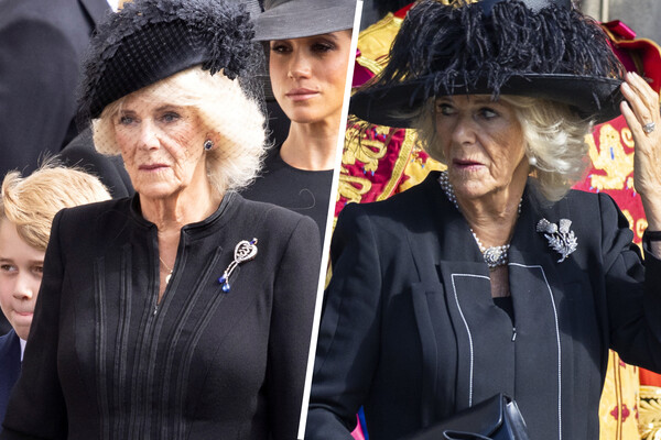 После смерти Елизаветы II Камилла уже не раз отдала ей дань памяти своими выходами. Для бдения у гроба с телом Елизаветы II в соборе Святого Эгидия в Эдинбурге Камилла выбрала брошь в виде двух веточек чертополоха — символа Шотландии — которую ей подарила ее покойная свекровь. На похороны Камилла также надела украшение со смыслом — брошь в форме сердца с тремя сапфирами: в свое время ее преподнесли королеве Виктории по случаю 60-летия правления — этот рекорд впоследствии побила ее правнучка Елизавета II, пробыв на троне на десяток лет больше.