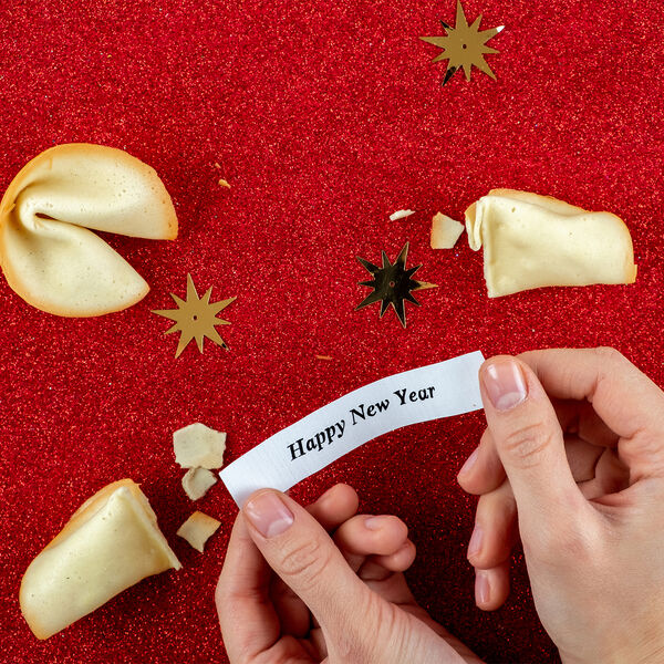 Предсказания на бумажке могут иметь вид китайских печений. Это хрустящие сладости из тонкого теста, в котором спрятаны бумажные полоски с текстом. Печенье можно приготовить самостоятельно или сделать российский вариант — сладкие запеченные орешки. В каждый орешек нужно вложить «пророчество» на грядущий год, соединить половинки и обернуть орешек в разноцветную фольгу, а затем сложить в красивую вазу для печенья.
