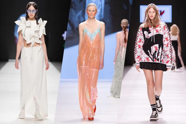 Можно ли выделить какие-то тренды Московской недели моды? Да — и это, прежде всего, цветы. Цветочная тематика прошла красной линией через всю Неделю — объемные 3d-цветы в качестве декора, цветочный принт, цветочные украшения присутствовали в изобилии. Не обошлось в Москве и без модных прозрачных и полупрозрачных материалов, однако у нас, надо признать, дизайнеры несколько целомудреннее креативных директоров крупных брендов. Ни одного просвечивающегося соска на подиуме замечено не было. Зато фатин, органза и сетка — были.