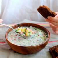 Окрошка с адыгейским сыром на кефире