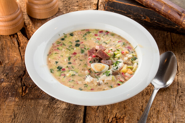 Старинный рецепт окрошки с говядиной на квасе