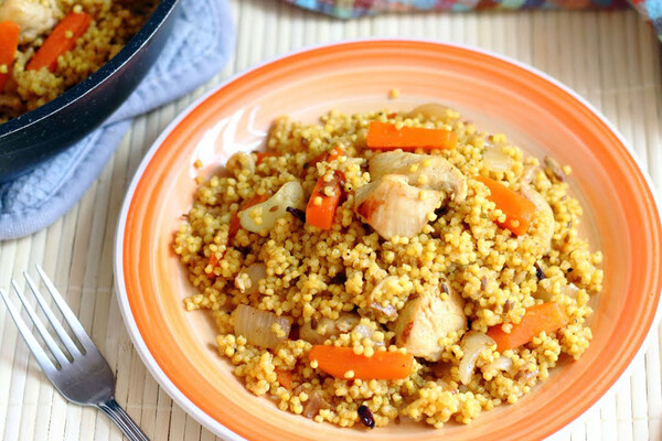Плов из пшенной крупы с курицей и тыквой