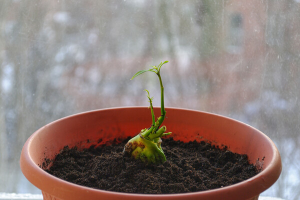 Удобрять дерево можно раз в сезон — подойдет перегной или универсальное азотсодержащее удобрение для комнатных растений. При должном уходе из семечка вырастет большое дерево и, возможно, через несколько лет даже начнет цвести.