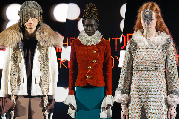 Визуально коллекция, названная по-французски «Головокружение», довольно разнообразна — это путешествие во времени и пространстве в Англию времен Тюдоров с огромными платьями-пирамидами, в итальянскую комедию дель арте, в Османскую империю с ее шелками и шароварами, к кринолинам Марии-Антуанетты и мужским костюмам Марлен Дитрих. Плюс — использование разнообразных техник, в числе которых золотое шитье, плетение и пэчворк. Не очень понятно, увидим ли мы какой-то из этих нарядов на красной дорожке «Оскара», но в историю моды они точно войдут.