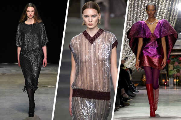В этом сезоне у американских дизайнеров заметна тяга ко всему блестящему — люрекс, который встречается повсеместно, заставляет вспомнить о дискотеке в стиле 80-х. Есть варианты скромные — блестящие, но, по крайней мере, черные платья. Однако встречается и настоящее волшебство, переливающееся всеми цветами радуги, — оно вынудит ежедневно чувствовать себя так, будто наступил новый, 1985-й, год.