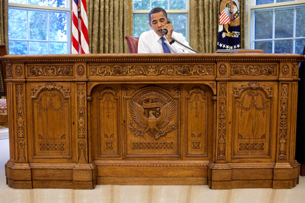 Стол, между тем, особенный: он был подарен еще британской королевой Викторией в конце XIX века. Это один из немногих предметов, которые остаются в Овальном кабинете, несмотря на смену президента. Каждый новый глава государства меняет обстановку в этой комнате — но некоторые вещи стоят здесь десятилетиями.