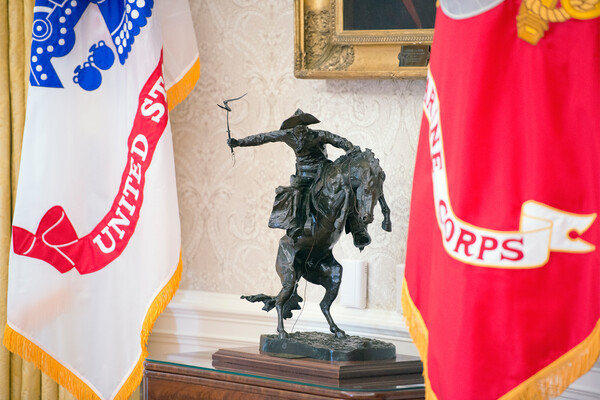 «Объездчик мустанга» украшал Овальный кабинет при Джеральде Форде, Джимми Картере, Рональде Рейгане, Джордже Буше-старшем, Билле Клинтоне, Бараке Обаме и Дональде Трампе (в первую его каденцию). А вот Джо Байден заменил его на другую скульптуру с лошадью — всадника на коне, созданного художником из Нью-Мексико Алланом Хаузером, принадлежащим к племени чирикауа народа апачи.