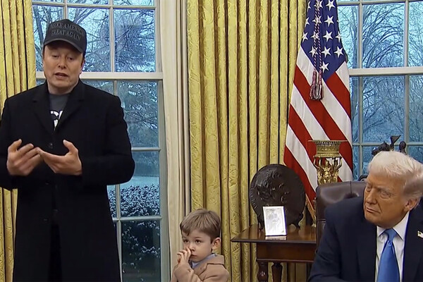 Четырехлетний сын Илона Маска побывал в Овальном кабинете вместе с отцом — и произвел немалое впечатление на собравшихся там журналистов. Главным образом тем, что вел себя, как обычный ребенок, — сидел у отца на шее и лез ему пальцами в уши, ползал по полу и даже поковырялся в носу, вытерев его содержимое о президентский стол.