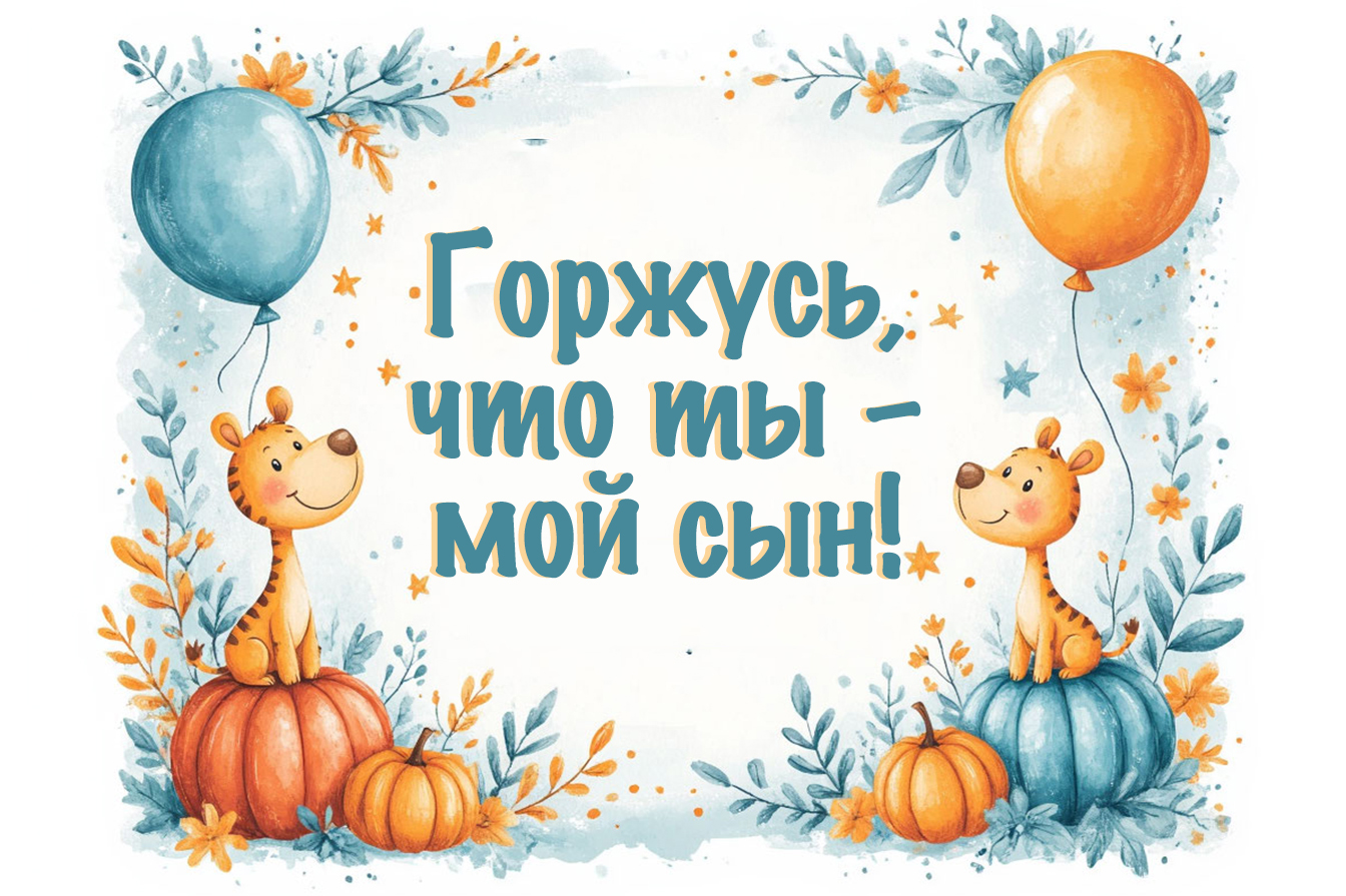 - С Днем сына! Умей постоять за себя и близких, уважай старших и будь верным другом. А я буду для тебя поддержкой и опорой!