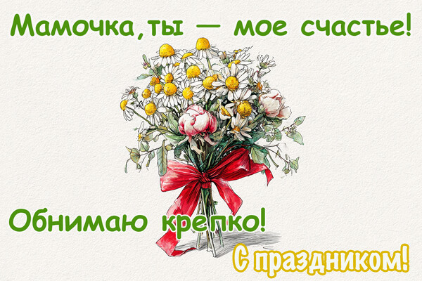 - С Днем матери! Пусть твой дом будет наполнен смехом и теплотой, в нем всегда царит любовь и взаимопонимание.