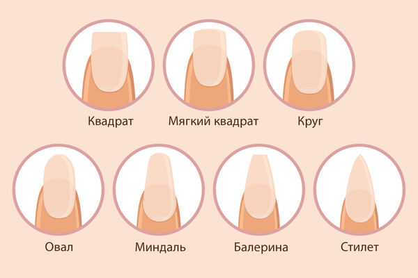 Шаг 3. Учтите длину пальцев: короткие и широкие — выбирайте вытягивающие контуры (овальная или круглая форма на короткой длине либо миндаль на средней); длинные и худые — можно квадрат, мягкий квадрат, балерину.